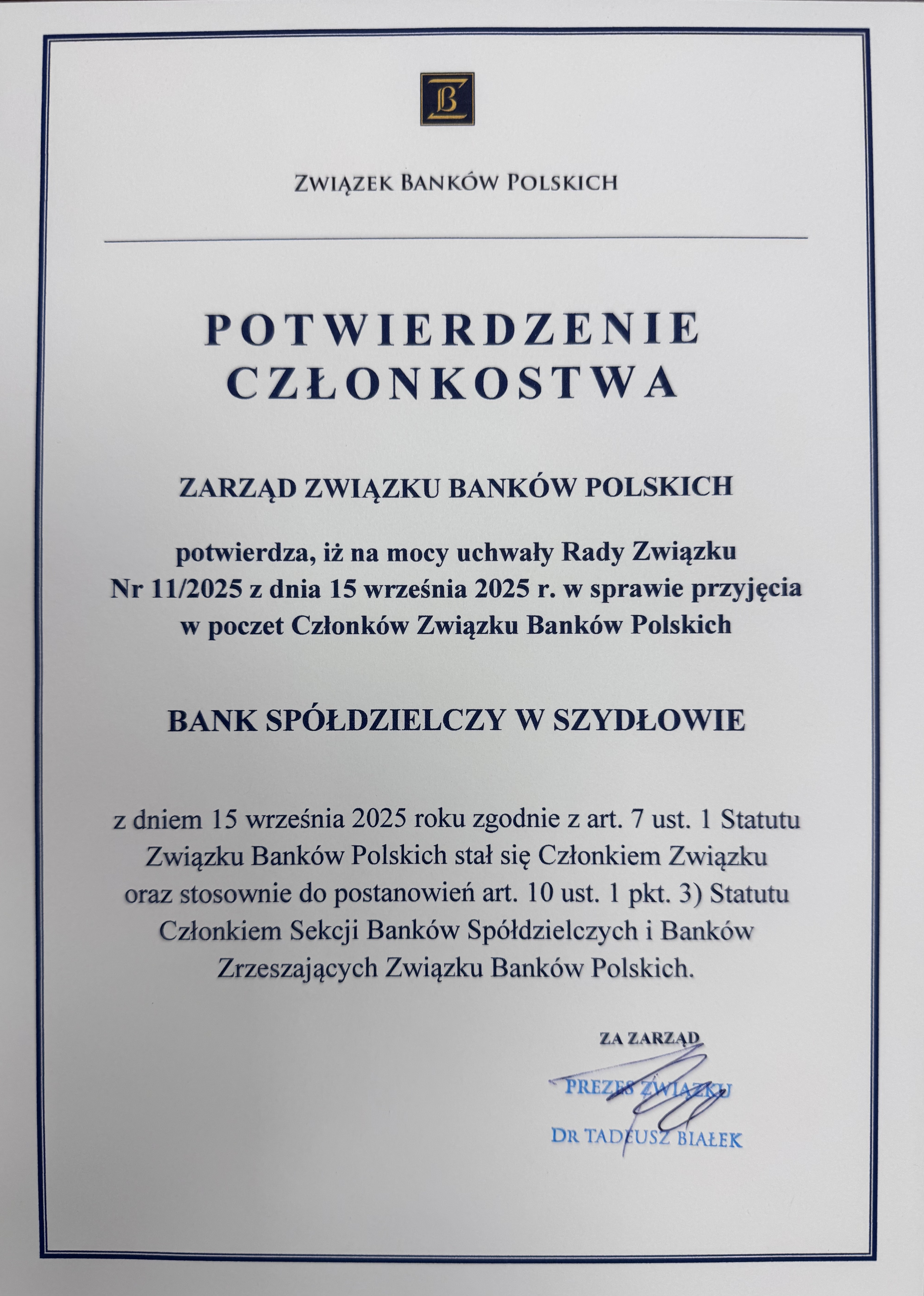 Podczas wydarzenia Bank Spółdzielczy w Szydłowie został oficjalnie powitany jako nowy Członek Związku Banków Polskich.